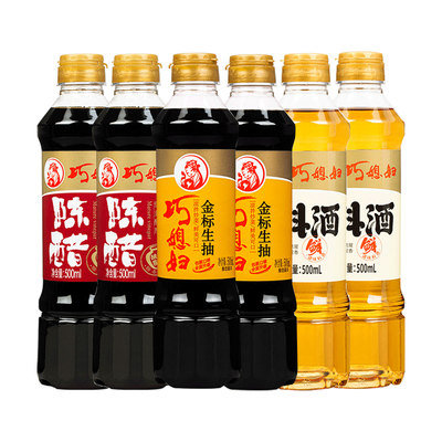巧媳妇调味组合来啦!500ml*6瓶/800ml*3大瓶巧媳妇酱油香醋料酒,香醋酸甜浓郁,料酒去腥增香,800ml大容量超实惠,烹饪好帮手!